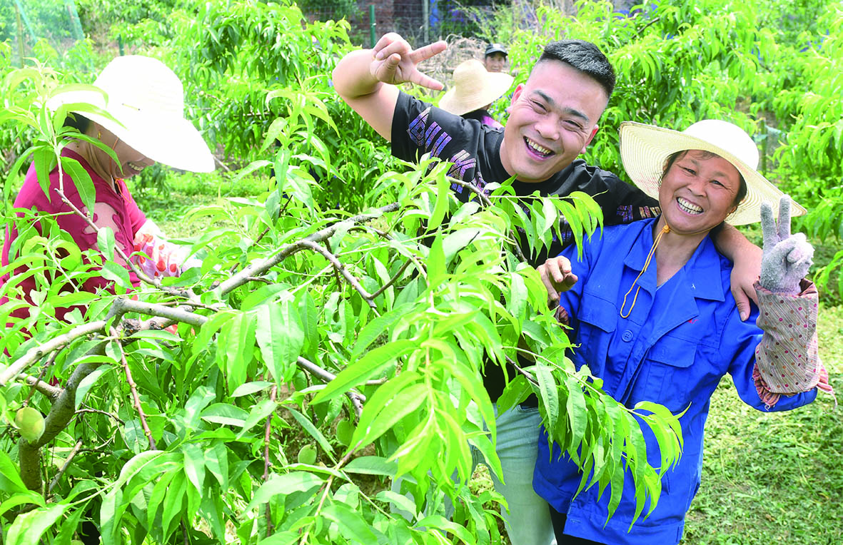 ▲村民在果园里快乐地工作。