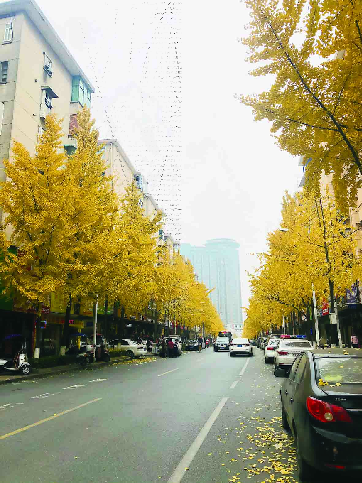 ▲秋天,银杏夹道的钻石路(资料图)。 记者 张威 摄
