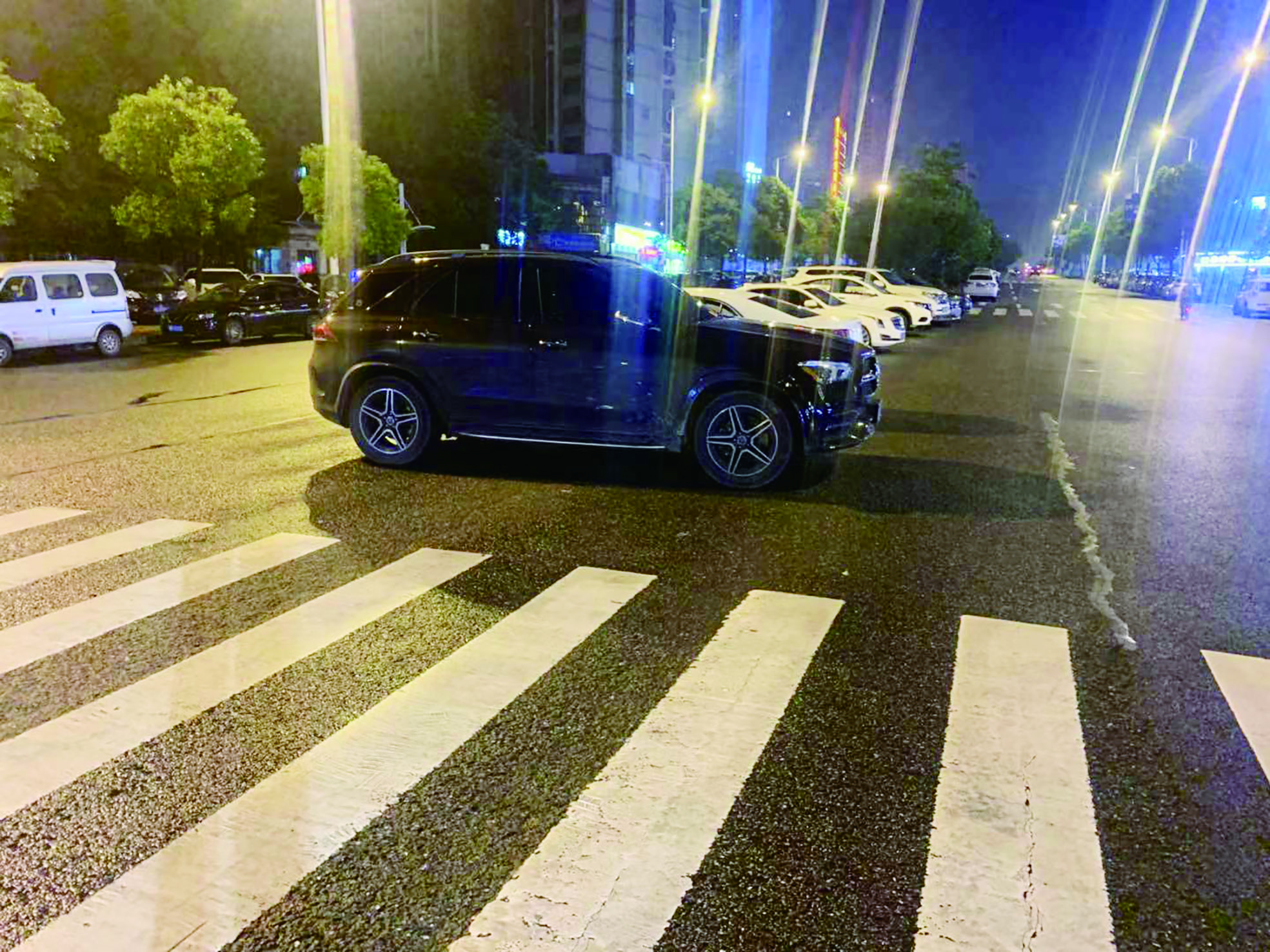 ▲美的城小区附近,不少车辆违停在马路中间。 记者 贺天鸿 摄