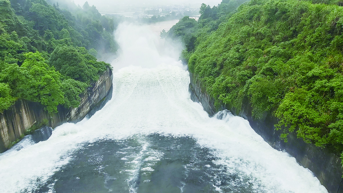 5月25日7时,随着几声泄洪警报响起,攸县酒埠江水库泄洪道闸门缓缓开启,滚滚洪水从陡坡顺流而下。当日,酒埠江水库开闸泄洪,最大流量达到每秒200立方米。
