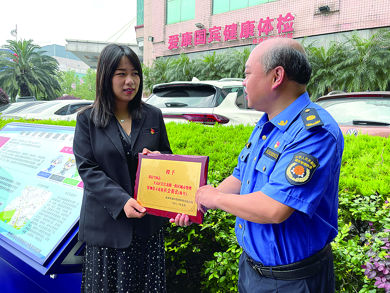 ▲郭晨雪获聘“社会街长”。 记者 伍靖雯 摄