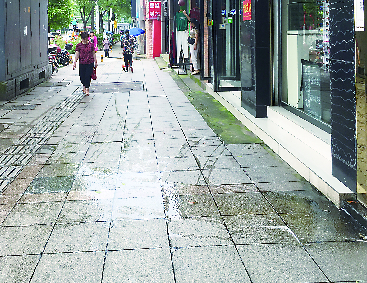 “主要是洗衣机洗衣服时排出的污水。我们曾向楼上居民反映排水管道漏水问题,但没用。”临街商户反映,流水现象在去年就已经出现,因人行道地面有流水,曾有行人和骑车市民不慎滑倒。