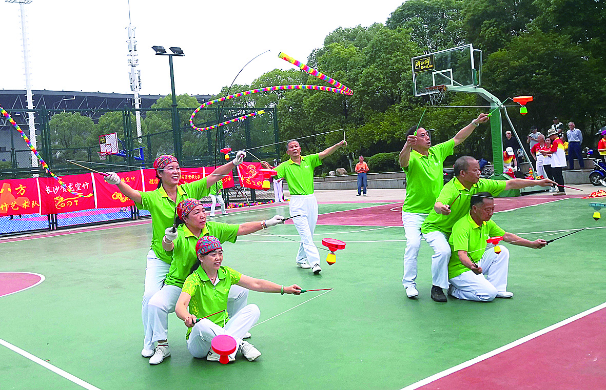 5月26日上午,来自长沙、株洲、湘潭等地的200余名空竹爱好者相聚市体育中心,举行了第二届长株潭空竹联谊活动(株洲站)。这些空竹爱好者大部分是退休人员,年龄最大的有83岁。他们精神焕发、技艺精湛,把自己的绝活都展示了出来。