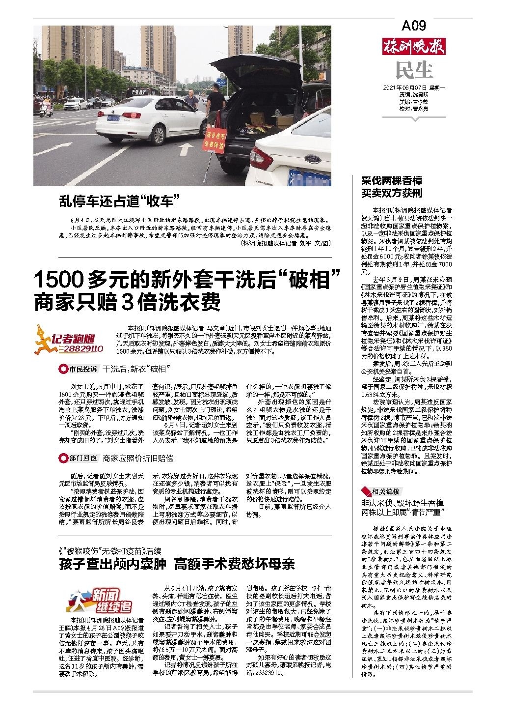 1500多元的新外套干洗后“破相” 商家只赔3倍洗衣费