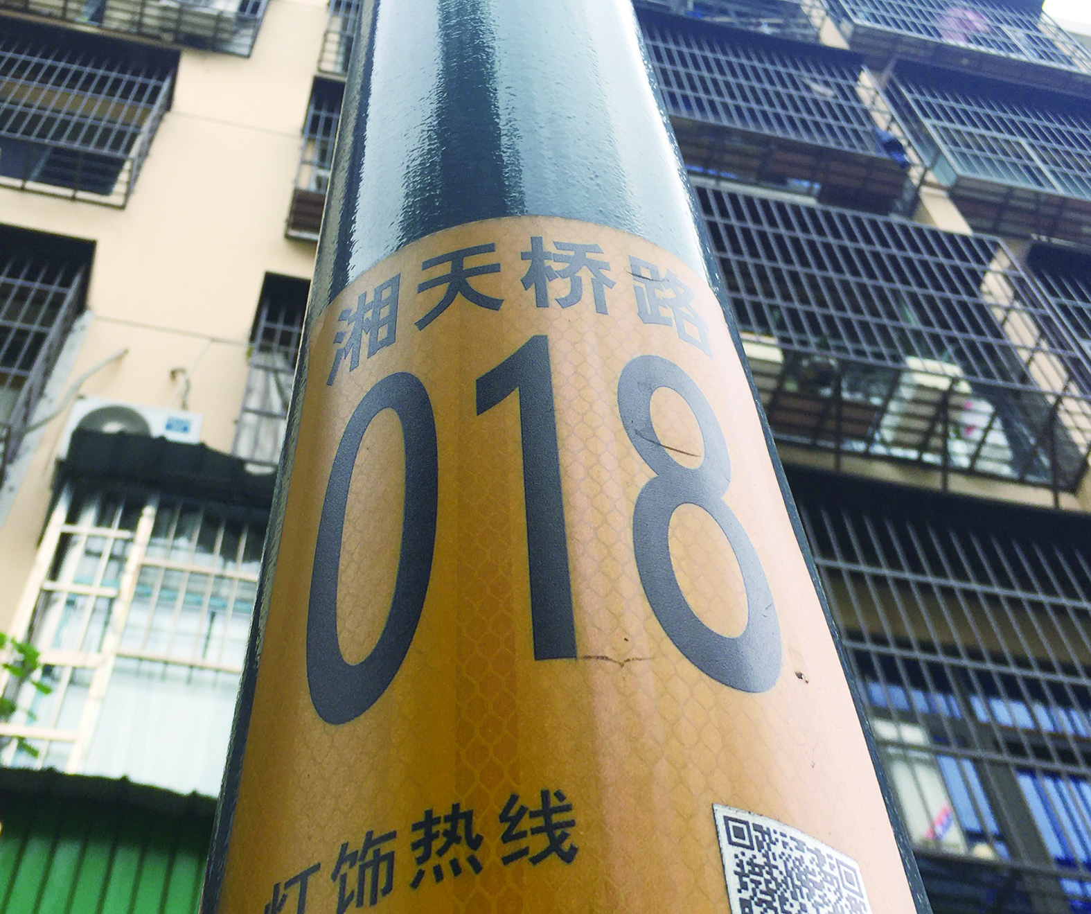 ▲路灯杆上路名为“湘天桥路”。 记者 刘平 摄