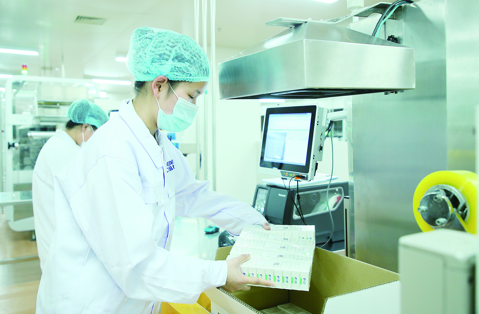 5月31日,工作人员在国药集团中国生物北京生物制品研究所新冠疫苗包装车间内工作。