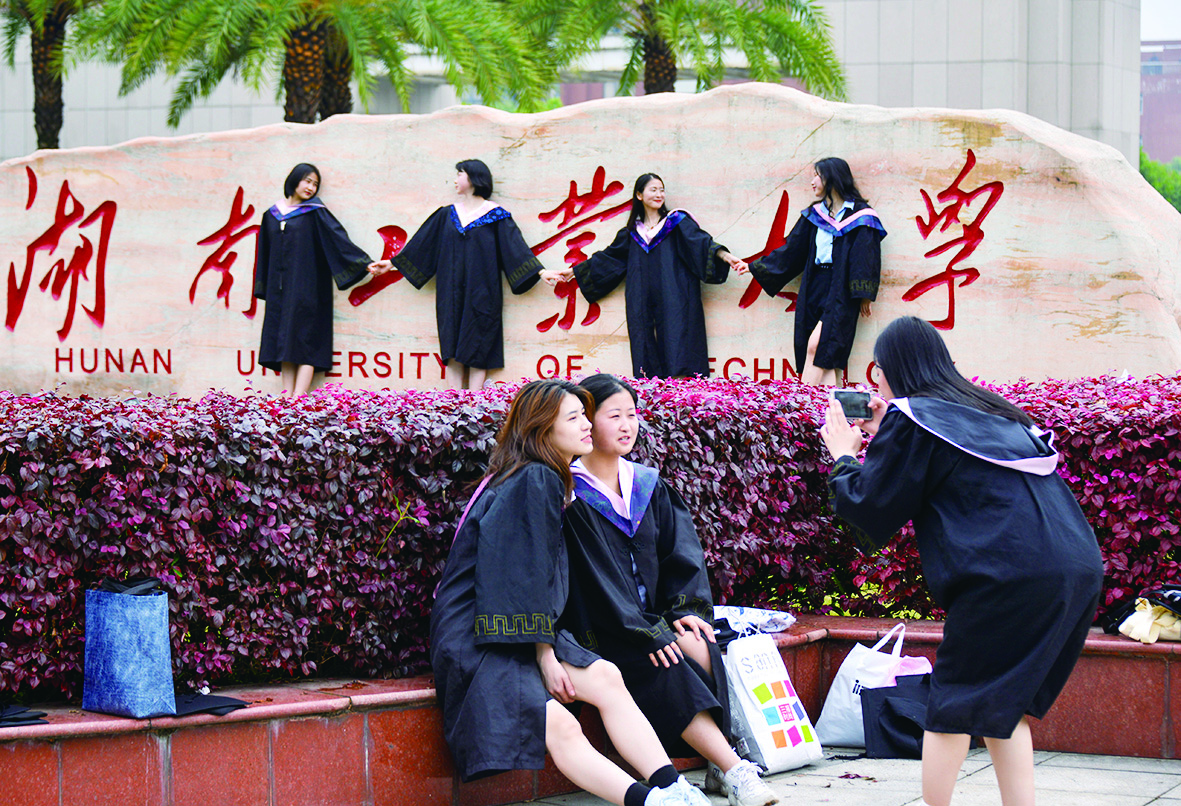 正值高校毕业季,同学们纷纷合影留念,拍摄毕业照。不同于过去一张简单的大合影,现在的毕业照形式多样。6月2日,湖南工业大学河西校区,2017届经贸学院的同学们拍摄“花式”毕业照,致敬青春。