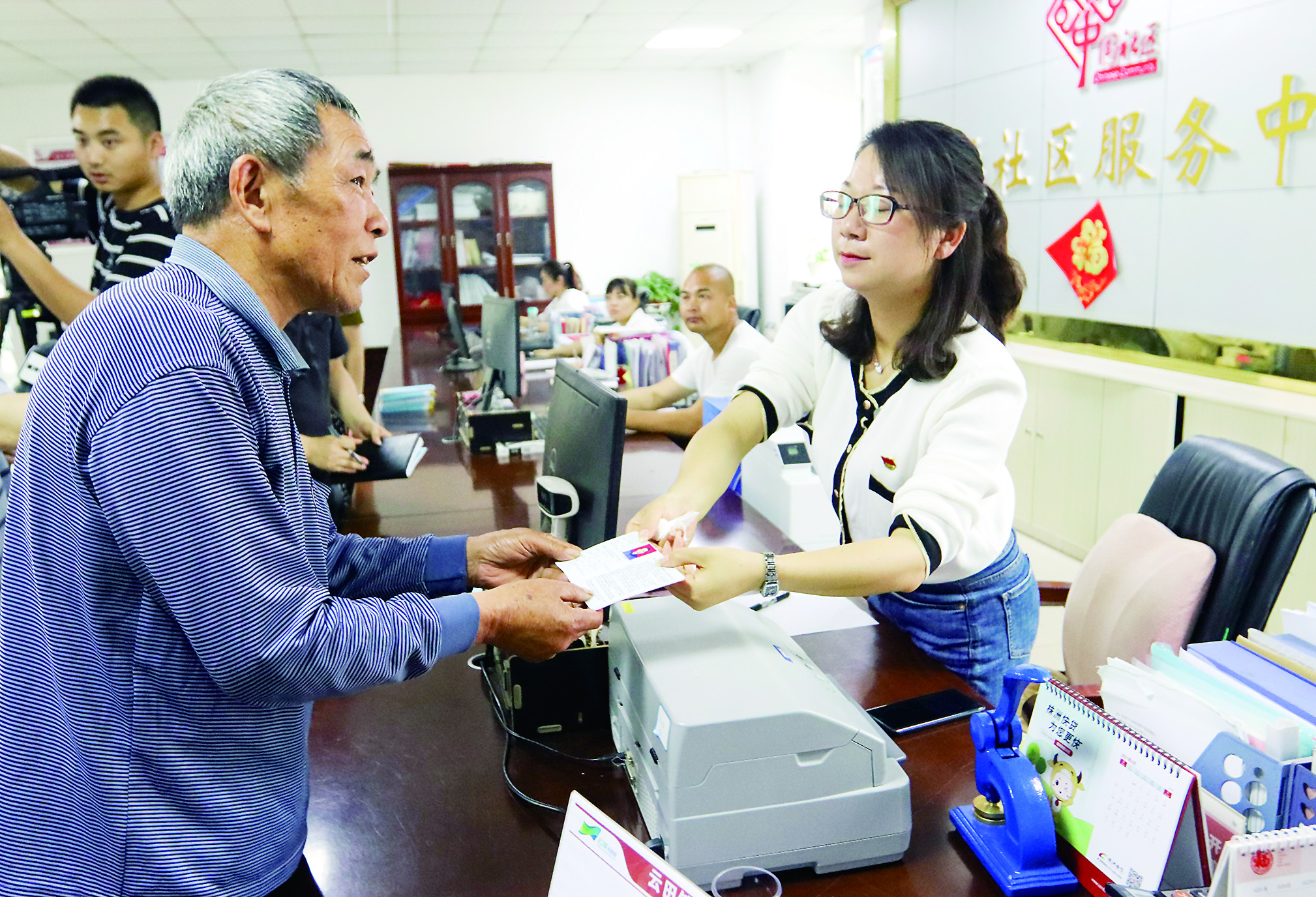 ▲5月27日,在云龙示范区云田镇高福社区,工作人员为邻近长沙市雨花区跳马镇一位老人办理老年证。(资料图) 株洲晚报融媒体记者 刘震 摄