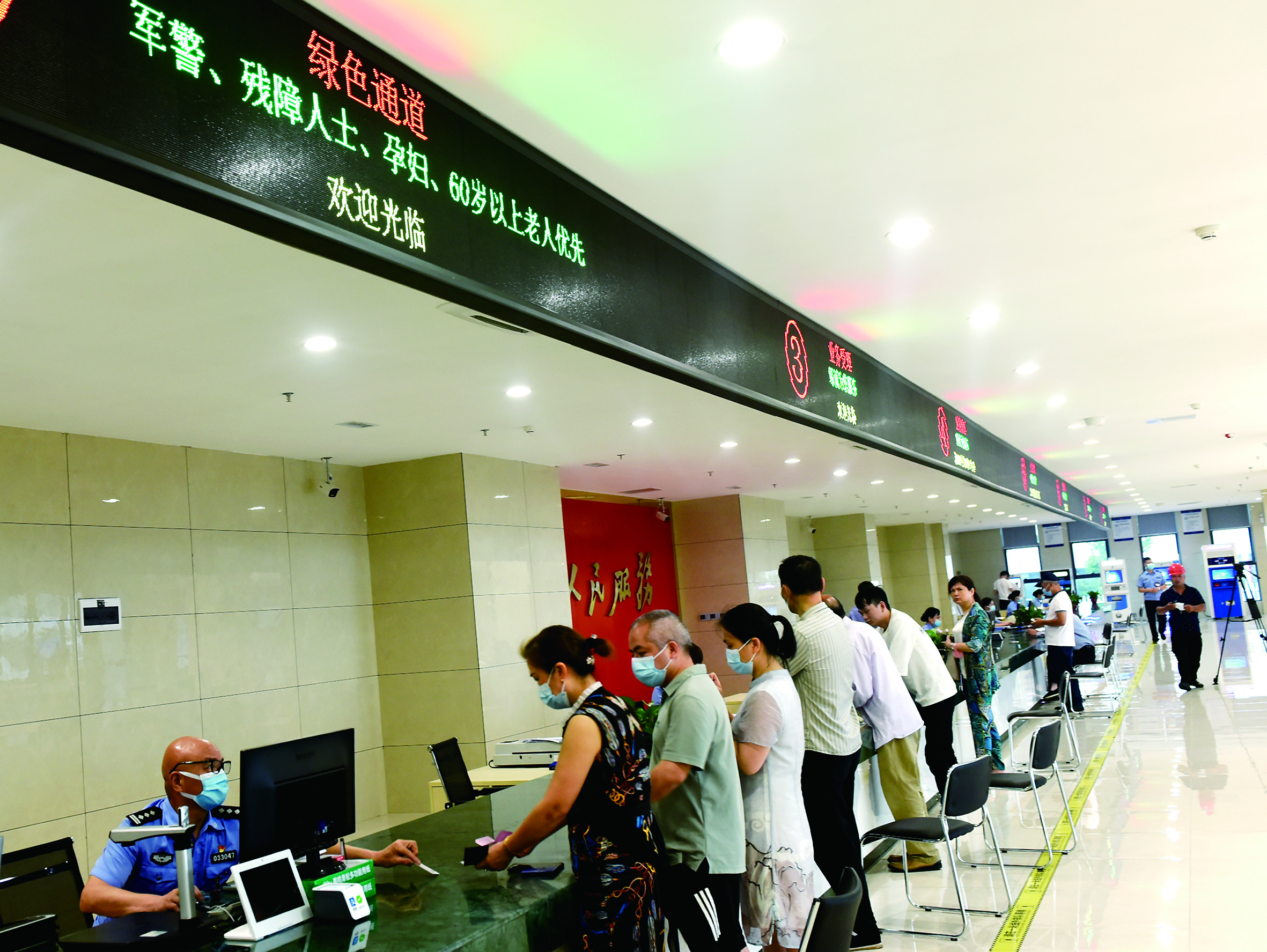 上午10时20分,71岁的市民刘小年急匆匆地进门,脸上一片焦虑之色。抬头一看,2号服务窗口上方标注为“绿色通道”,“老人优先”几个大字格外醒目。