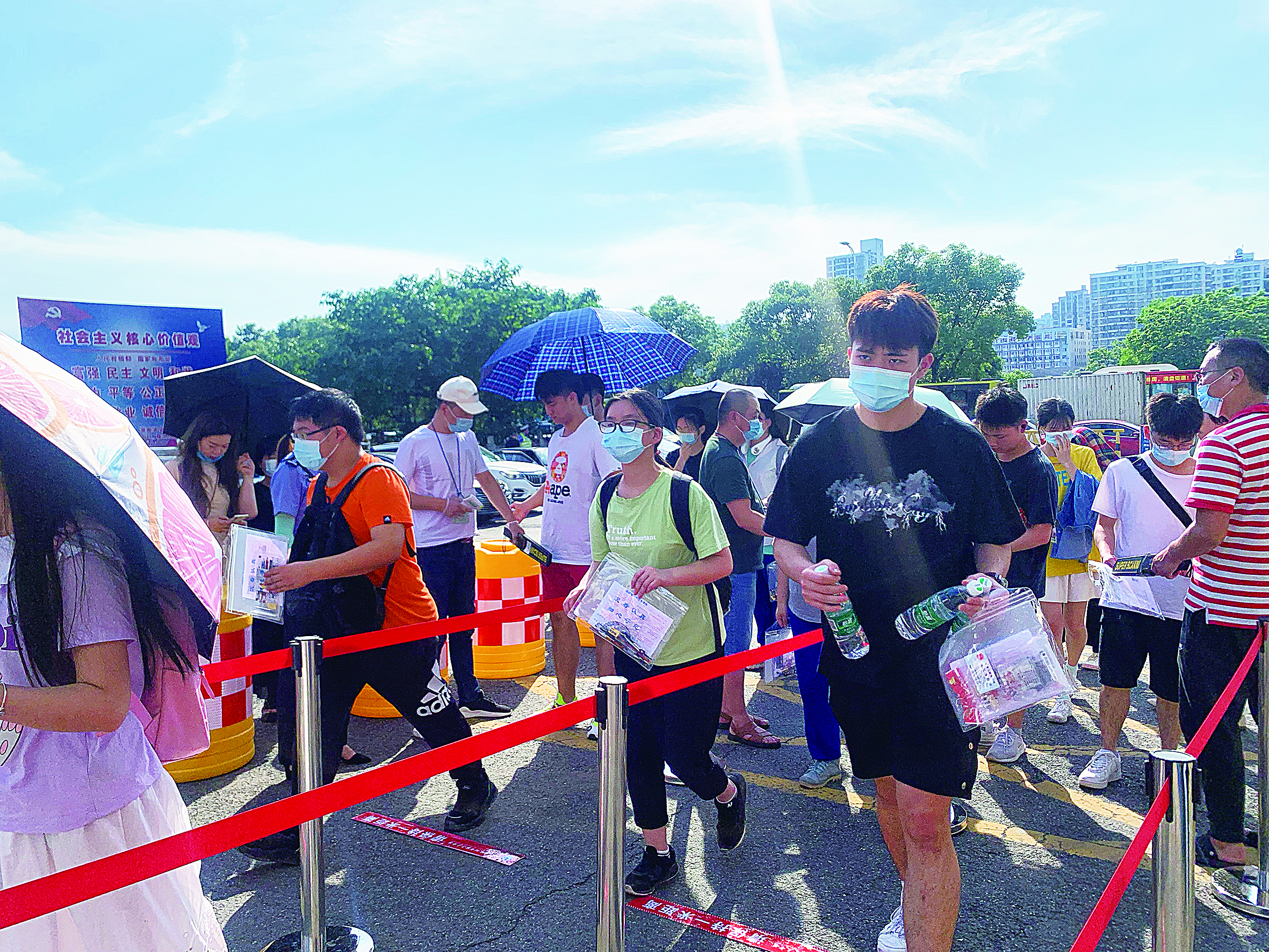 ▲昨日下午市十三中考点,考生有序进行踩点熟悉考场。记者 谭筱 摄