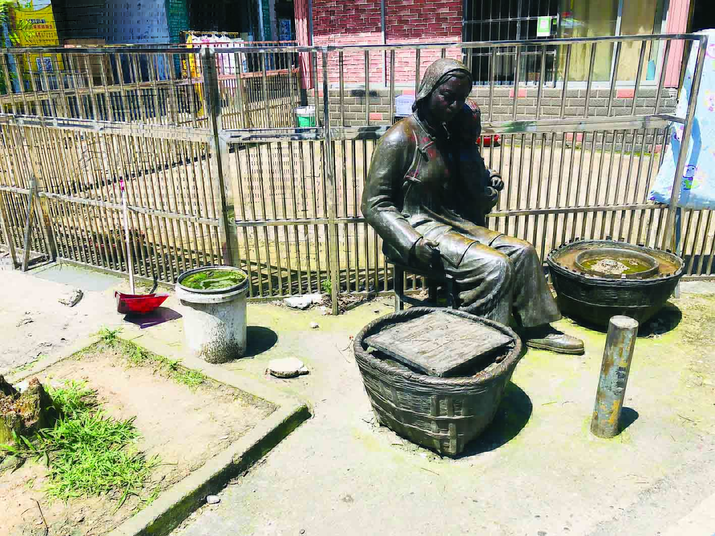 ▲街中铜雕已经没人合影。 记者 张威 摄