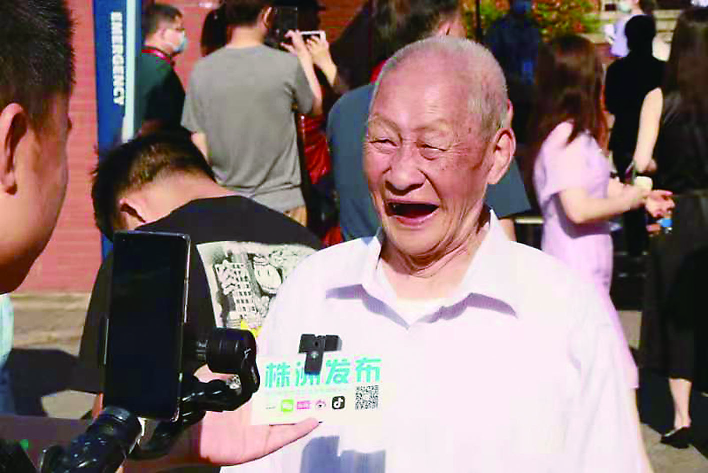 “这是我最小的孙女,今天是她非常重要的日子,我一定要陪伴。”咧开掉了多颗牙齿的嘴巴,郭爹爹的笑声格外爽朗。住在附近的他,当天特意起了个大早,跟着孙女前来候考。别看老爷子今年已经93岁,走路速度一点也不输年轻人。一路上,他紧紧跟在孙女旁边,不时说些笑话为其减压。