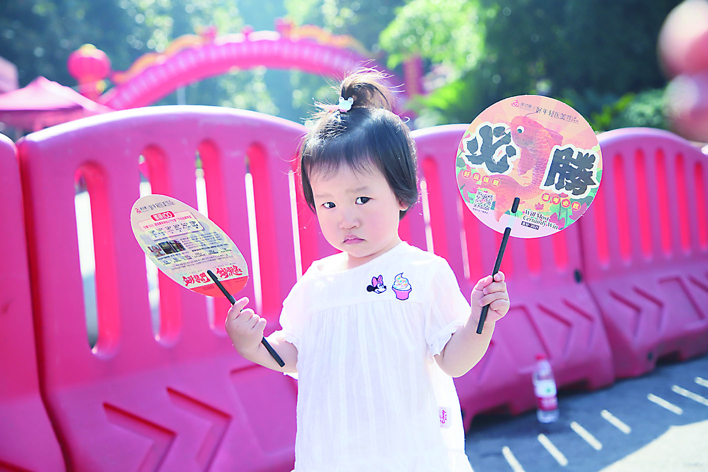 ▲两岁小妹为哥哥加油。 记者 戴凛 摄
