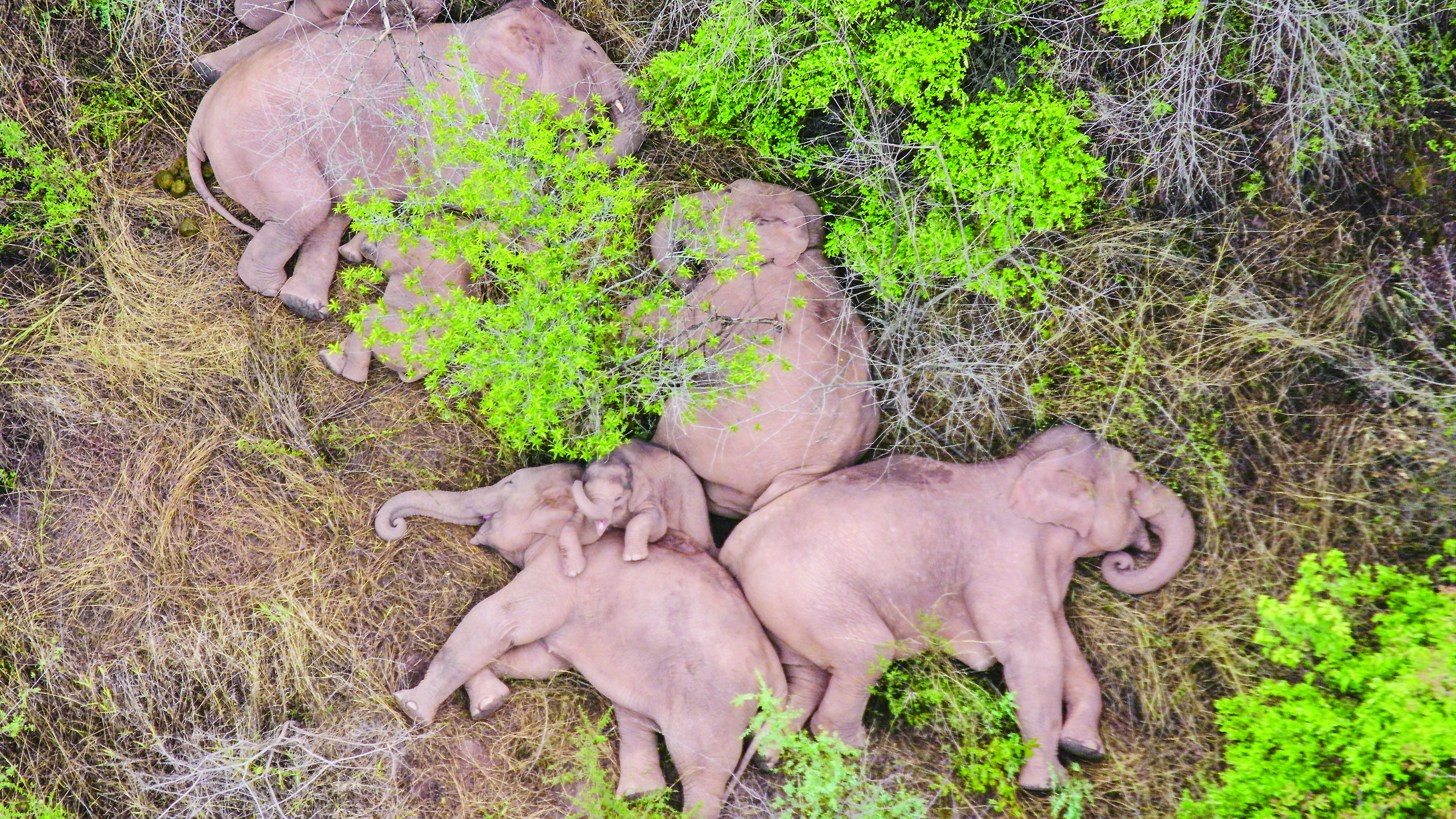 ▲6月7日在昆明市晋宁区夕阳彝族乡拍摄的野象(无人机照片)。