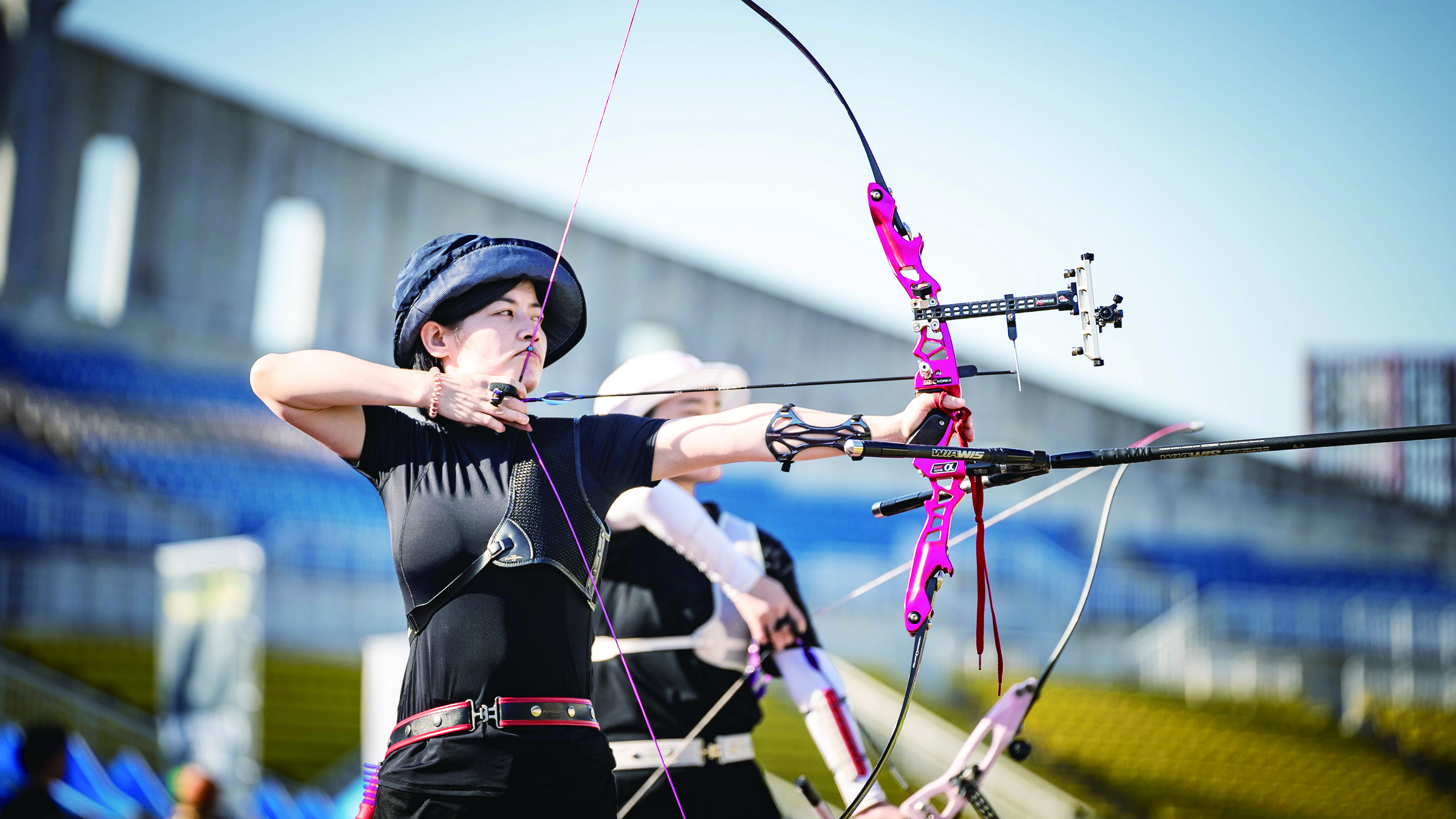 本次赛事为期三天,分为排位赛和淘汰赛,共设有复合弓、光弓、传统弓、反曲弓30米、反曲弓公开组(70米)、少年混合组(10米)六个项目。比赛现场,反曲弓、复合弓等满满一排让人眼花缭乱,参赛选手们平心静气,拉弓、瞄准、射箭、中靶,整个过程一气呵成,观众叫好声一片。