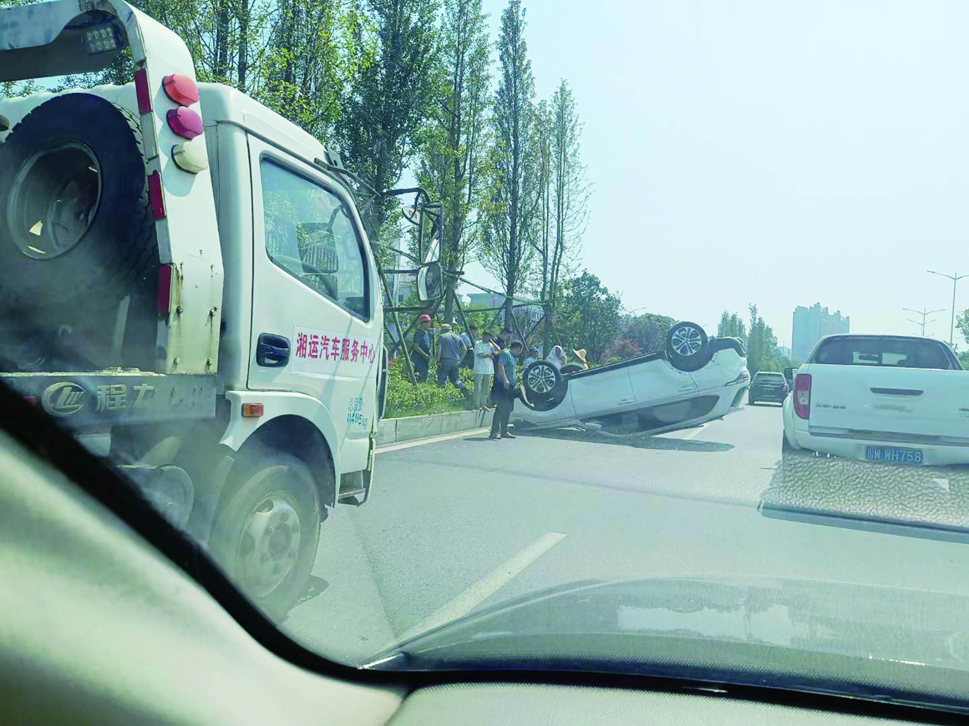 ▲白色小车“摔”了个底朝天。 通讯员供图