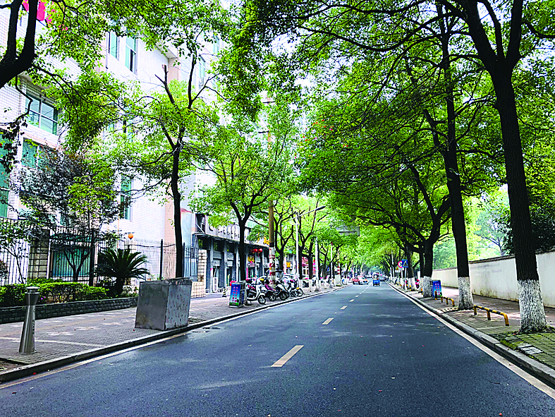 ▲绿树成荫,平整、宽阔的贺家路。 记者 张威 摄