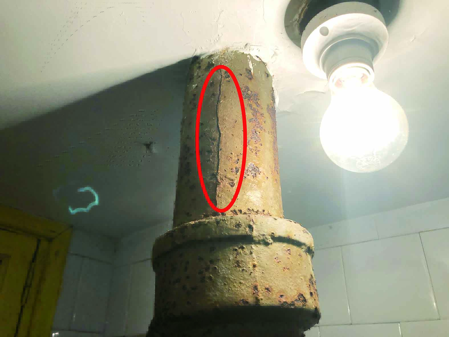 ▲文先生家客卫下水管道有裂缝。 记者 易楚曈 摄