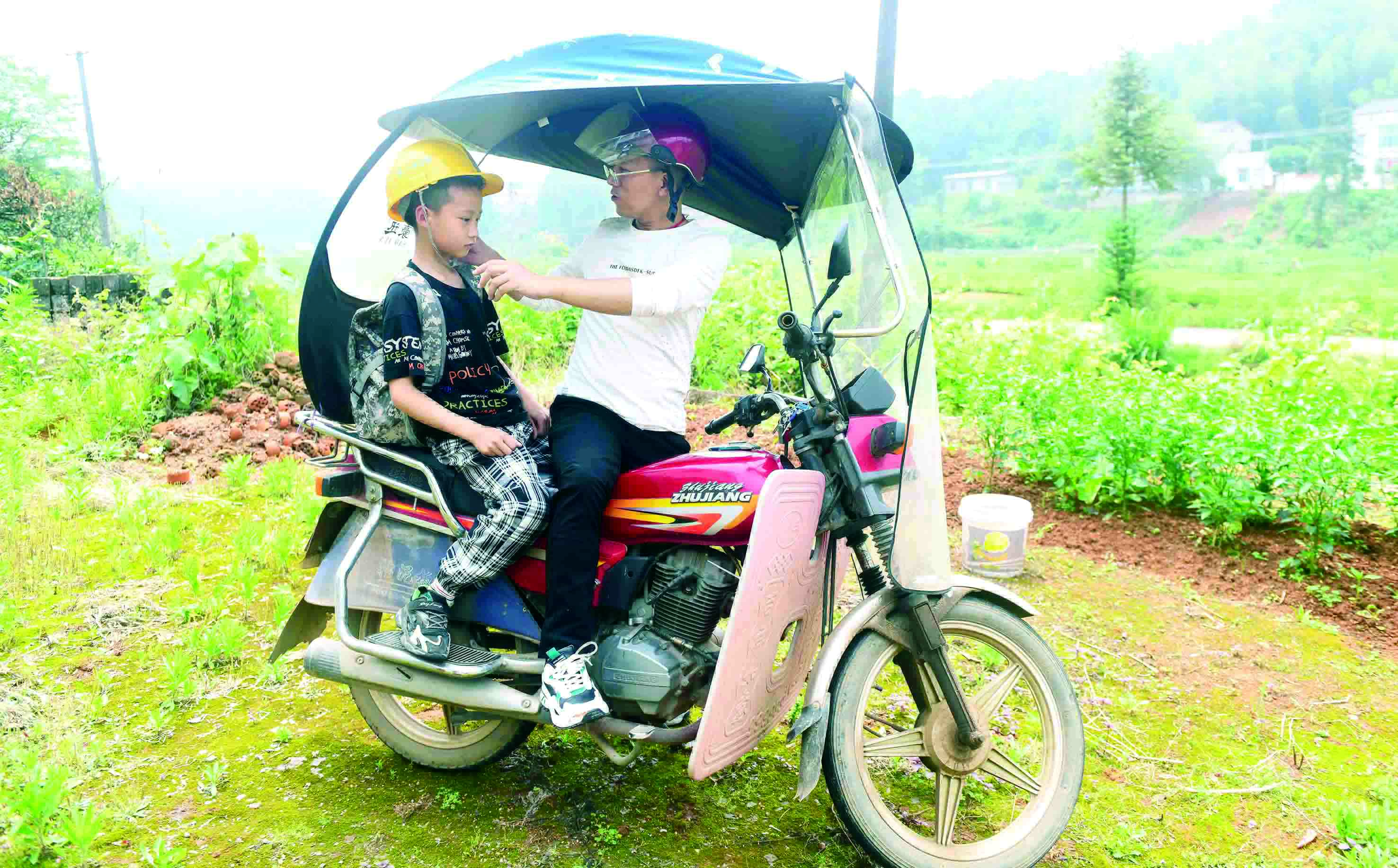 ▲早上带着侄子一起去学校。