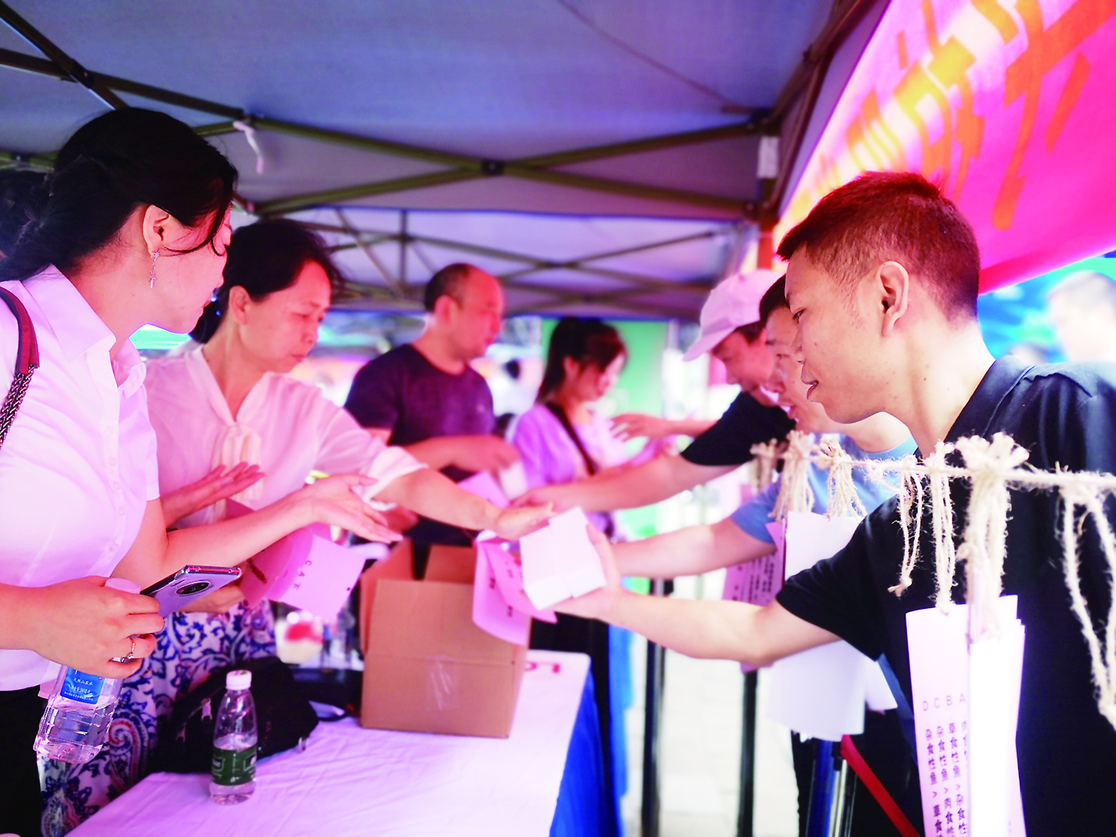 本次活动以“尚俭崇信 守护阳光下的盘中餐”为主题。活动现场,食品安全知识抢答、酒类真假鉴别、好粮油鉴别、食品安全咨询、食品安全宣传读物发放等系列互动活动吸引了众多市民参加。不到20分钟,200余份食品安全辟谣问答卡片被市民抢答一空。