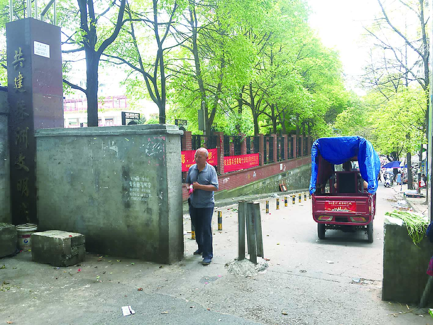 本报讯(株洲晚报融媒体记者 刘平)“通道口建了半堵墙,路面安装了一排隔离桩,道路已经不像一条路。”6月17日,有学生家长反映,位于荷塘区晨荷小学旁、和谐财富农贸市场前的道路上加建有墙体,还安装了隔离桩,占道经营现象长期存在,影响居民出行,学生上学和放学很不方便。