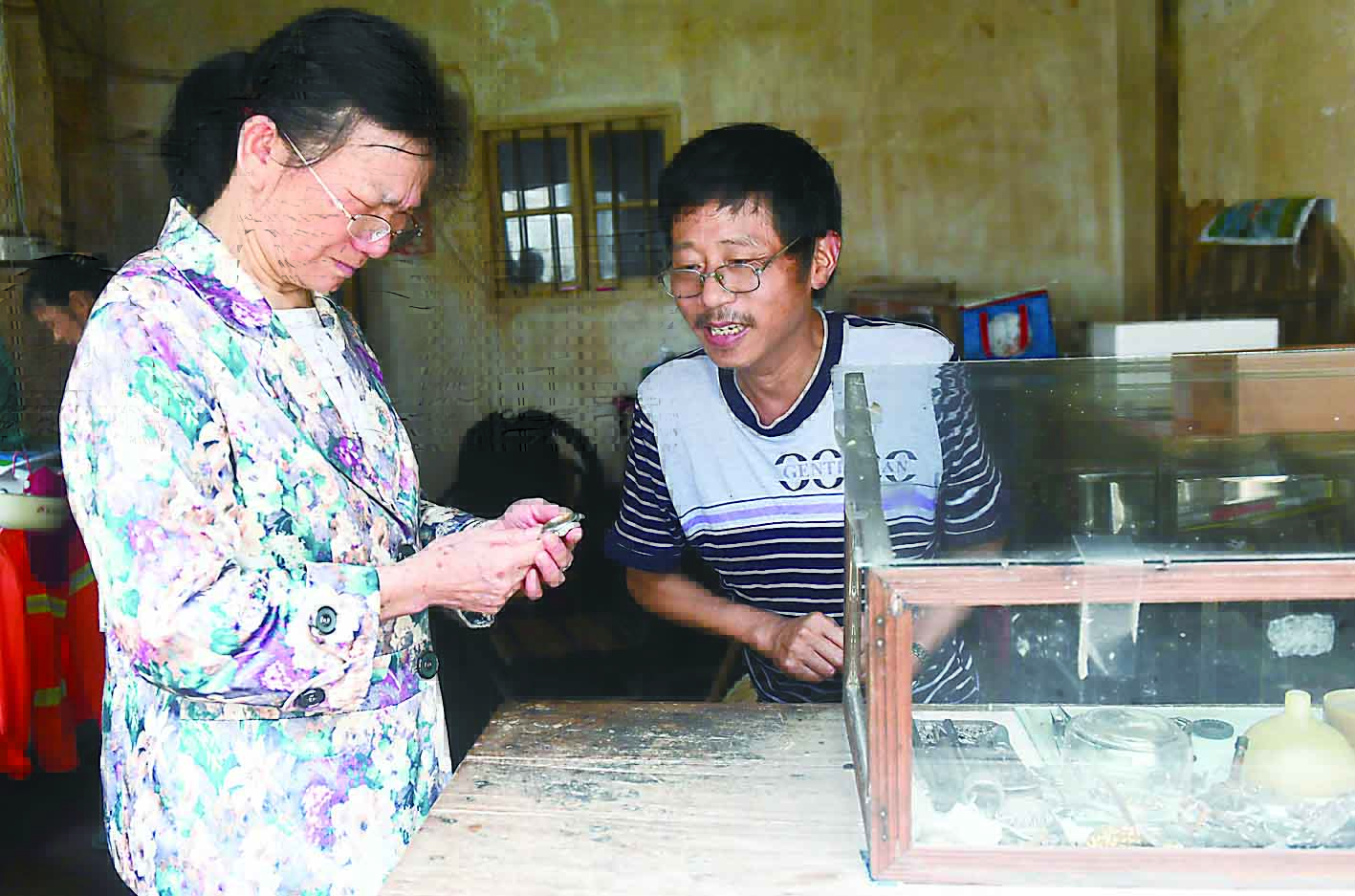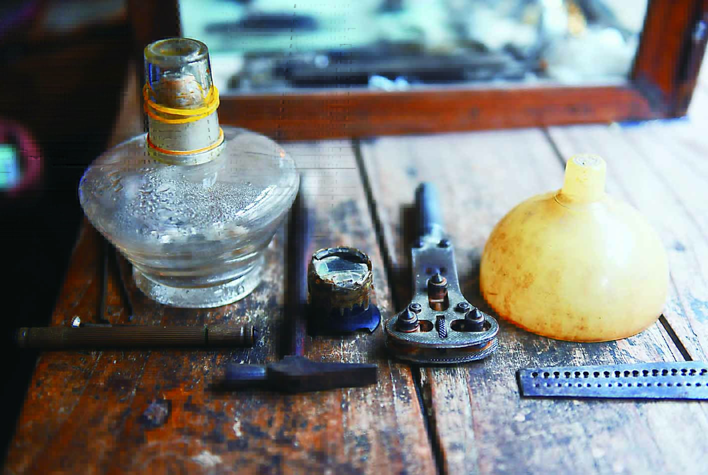 ▲彭光强的“码头口钟表修理行”坚守在老街上。