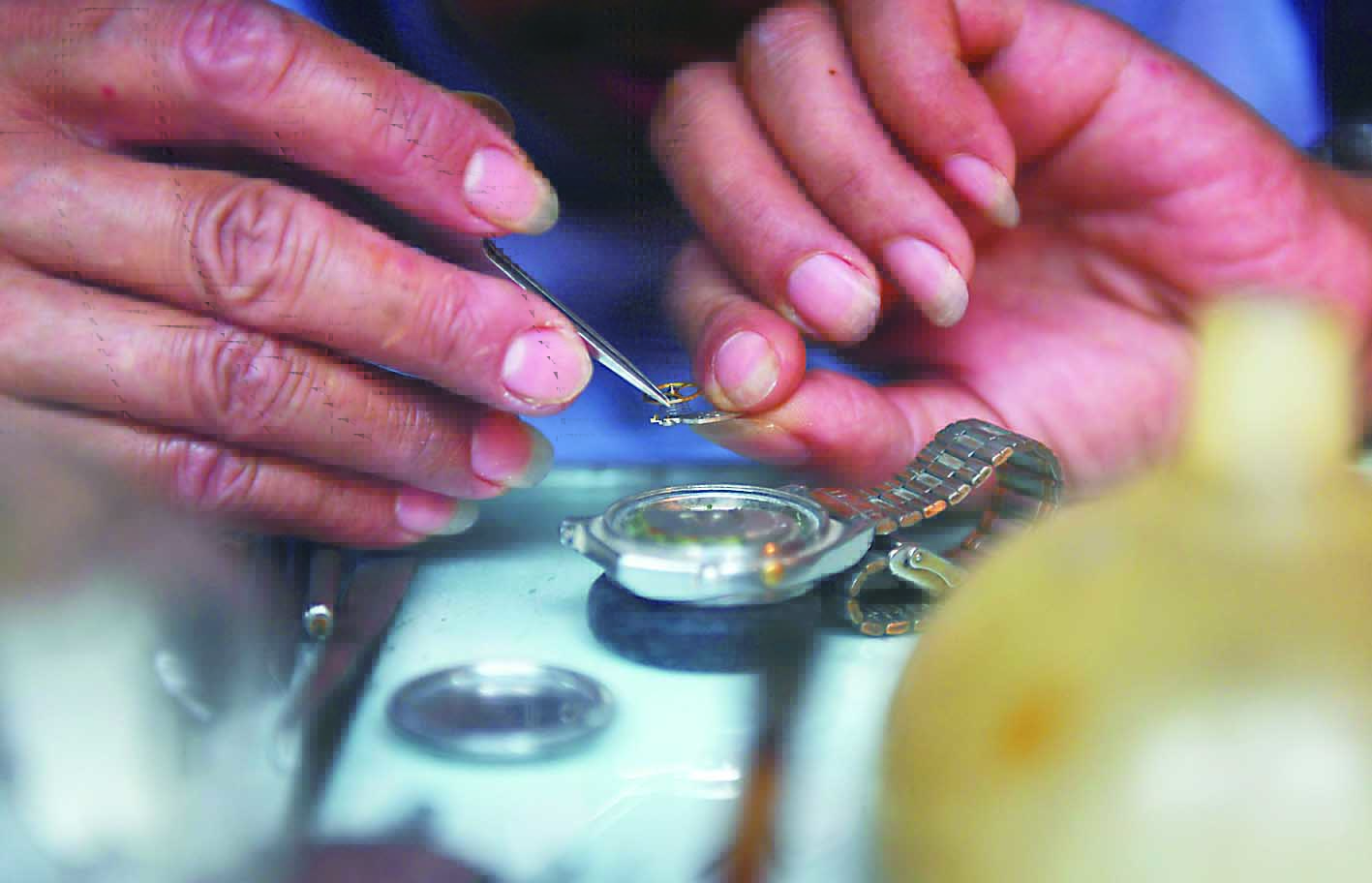 ▲手表的零部件都很细小,维修时需要全神贯注。