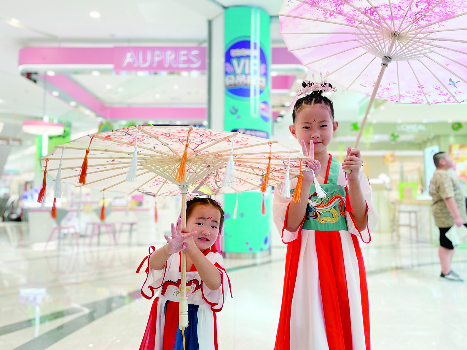 ▲孩子们展示传统服饰之美。 记者 彭慧洁 摄