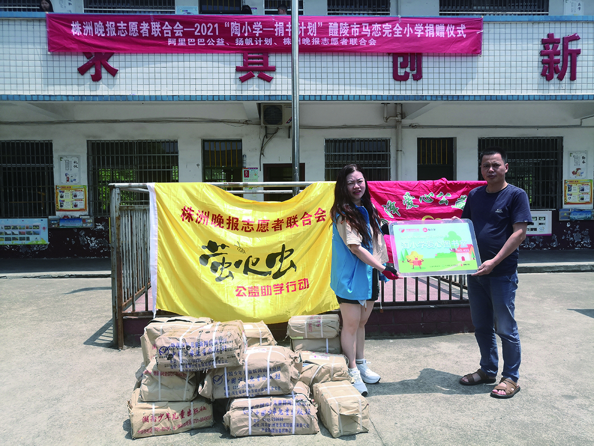 ▲醴陵市马恋完全小学“淘小学爱心图书室”捐赠仪式。李雅倩 摄