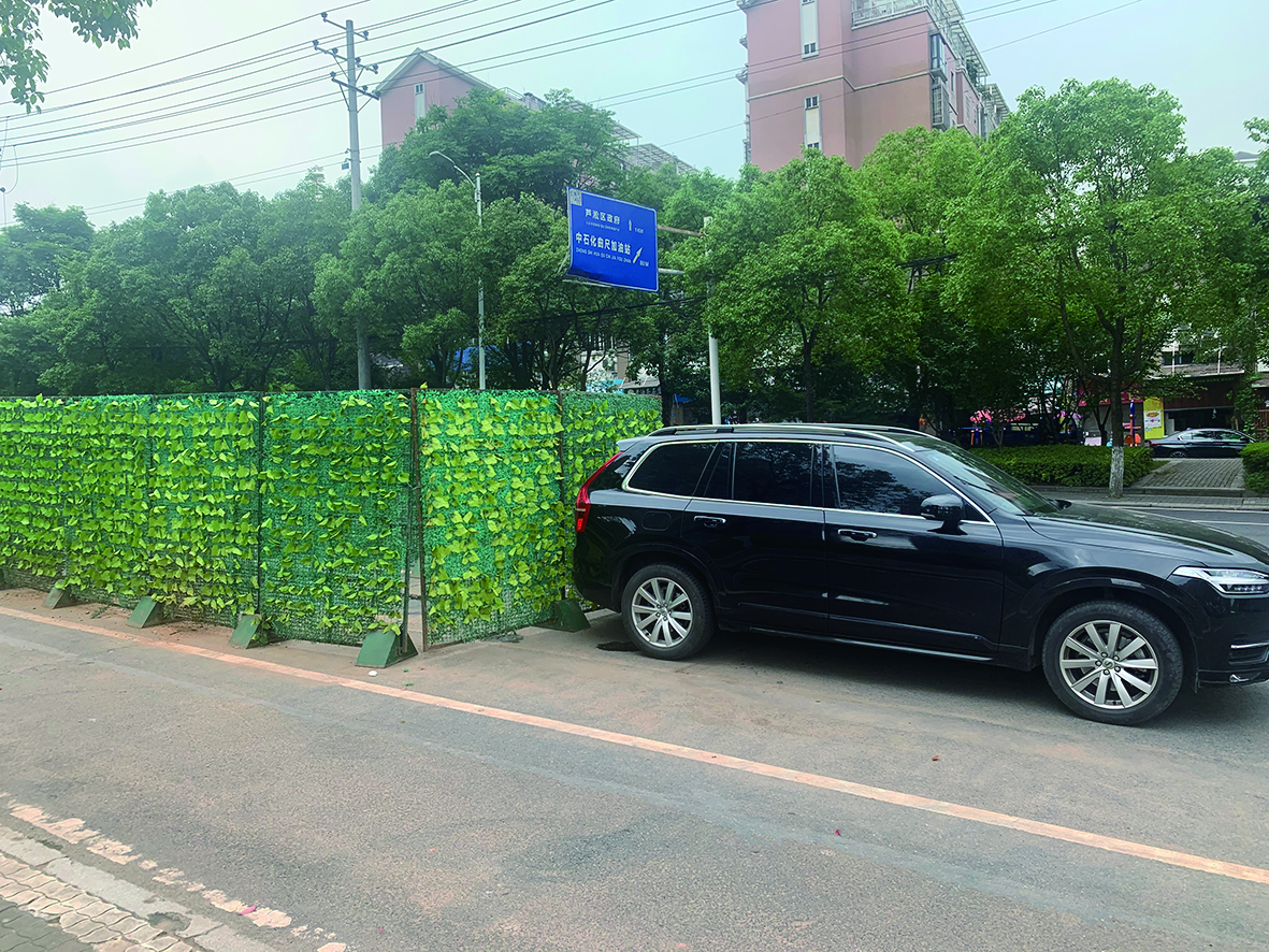 ▲6月22日上午,枫溪大道污水管网项目施工现场,一台私家车停在围挡前。记者 吴楚 摄