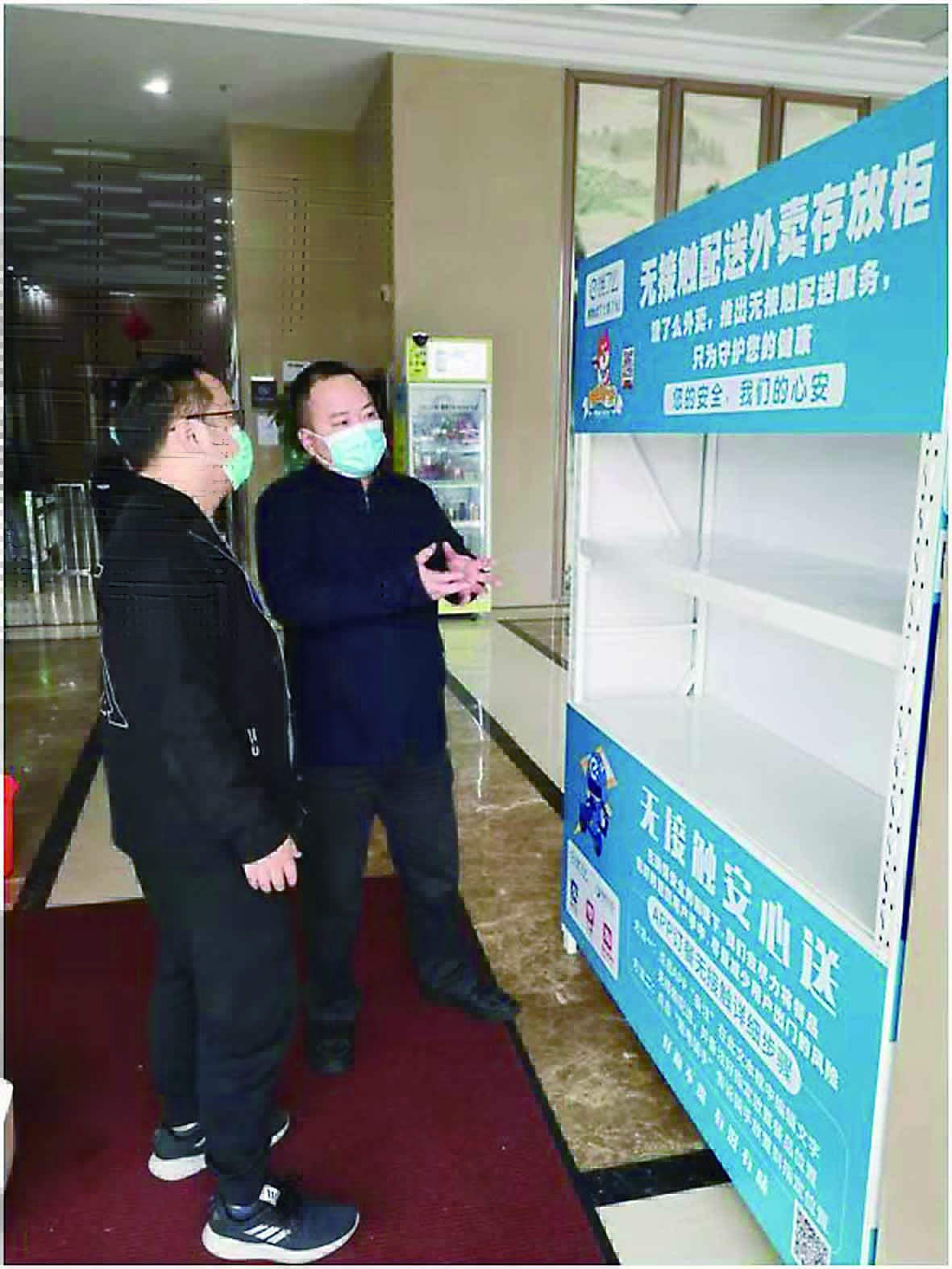 ▲市市场监管局工作人员现场推进“无接触配送”工作。 受访者供图