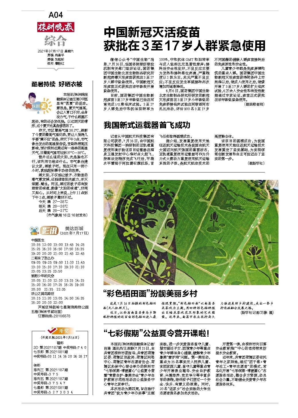 2021年07月17日《株洲晚报》