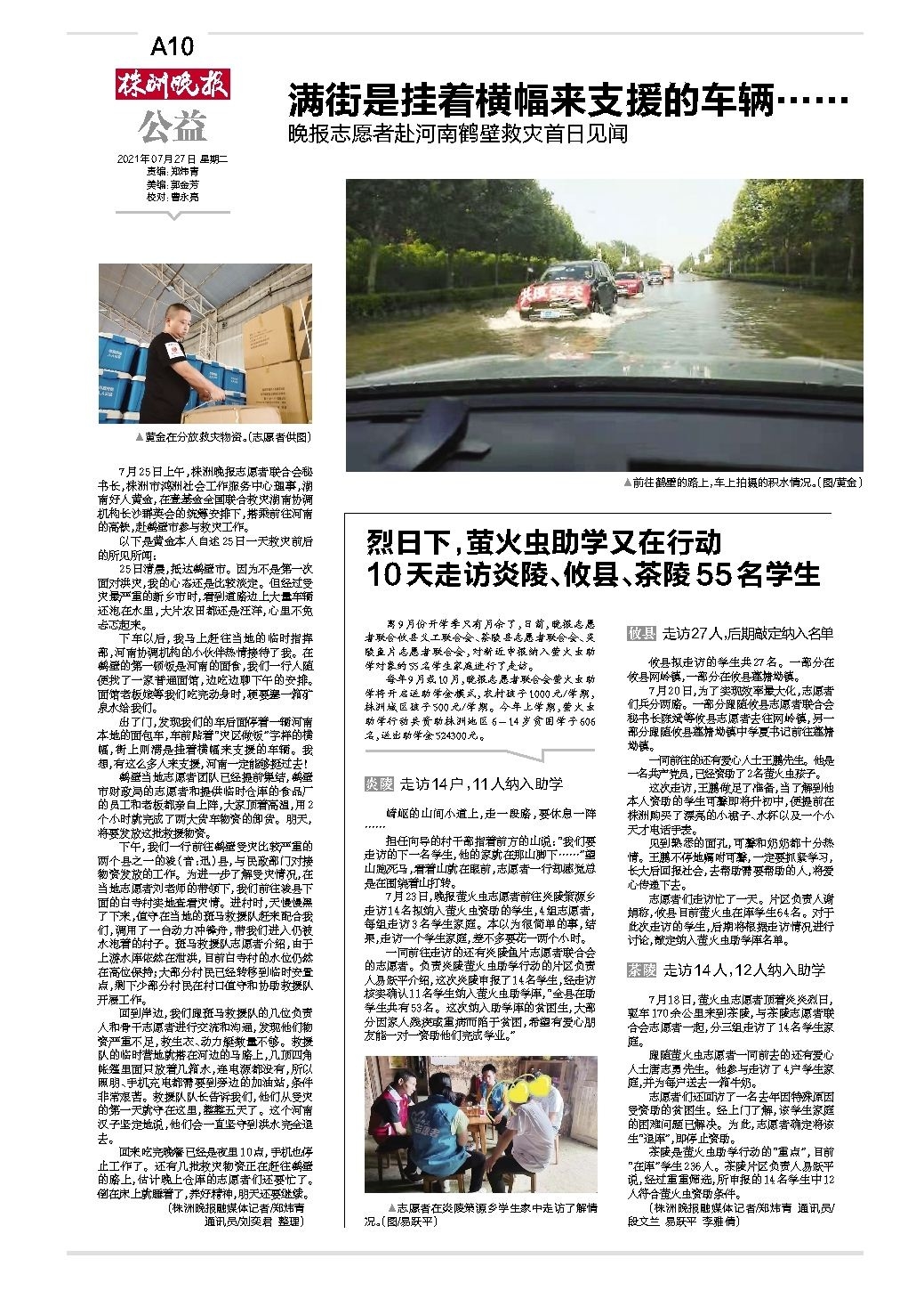 烈日下,萤火虫助学又在行动 10天走访炎陵、攸县、茶陵55名学生