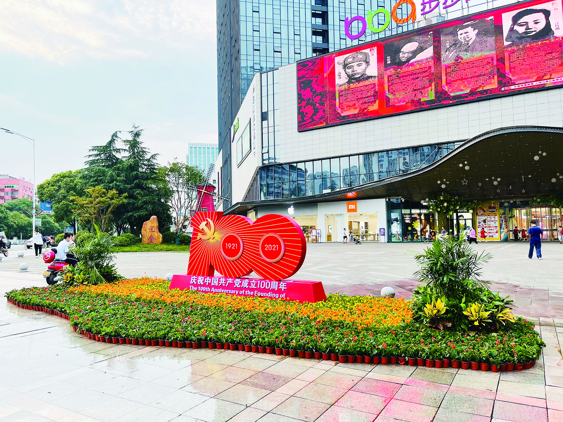 ▲在步步高广场前坪,庆祝中国共产党成立100周年的主题造型。 株洲晚报融媒体记者/旷昆红 通讯员/陈盛湘 摄