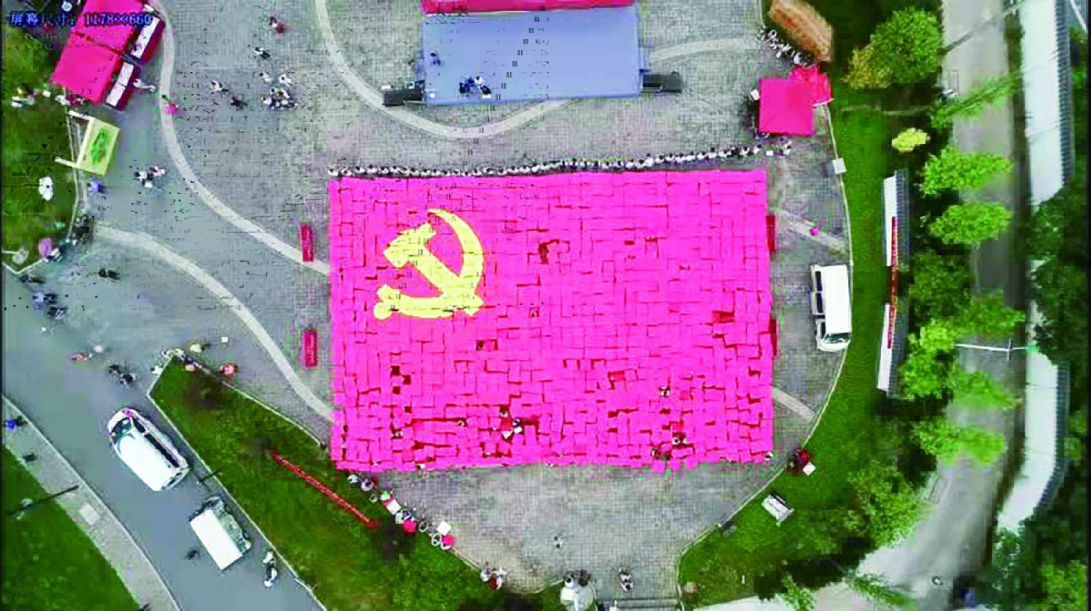 ▲石峰区1000多位干部职工组成一面党旗,迎接党的生日。 株洲晚报融媒体记者/周蒿 通讯员/谭洪汀 摄