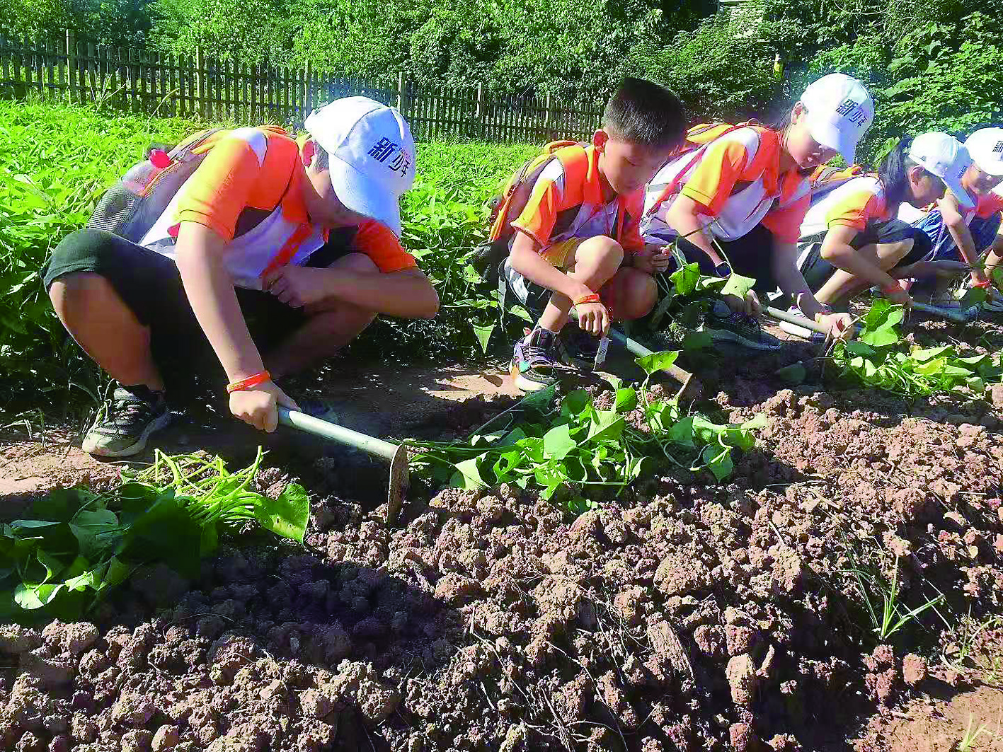 ▲耕读夏令营里,小孩顶着烈日在种红薯。 受访者供图