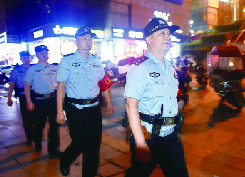 夜色渐深,贺永昇带着队伍继续巡逻,附近群众纷纷投以赞许的目光。
