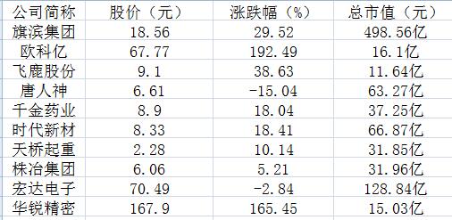 另外,小市值株股也有亮眼表现。如欧科亿总市值16.25亿元,增幅达179.93%,华锐精密总市值14.62亿元,增幅达160.47%。