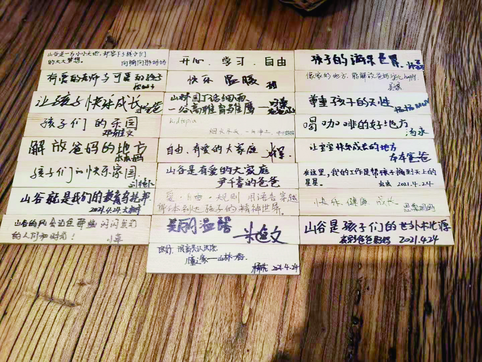 ▲家长对“山林一谷”的寄语。记者/赖杰琦 摄
