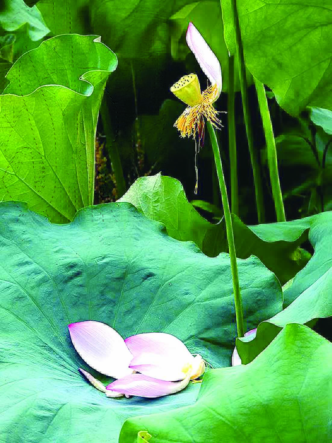 ▲7月3日,盛夏的神农公园荷池,荷花瓣慢慢凋落,露出了嫩黄的莲蓬,就像一个芭蕾舞演员,仰头微笑。 通讯员/潘学恒 摄