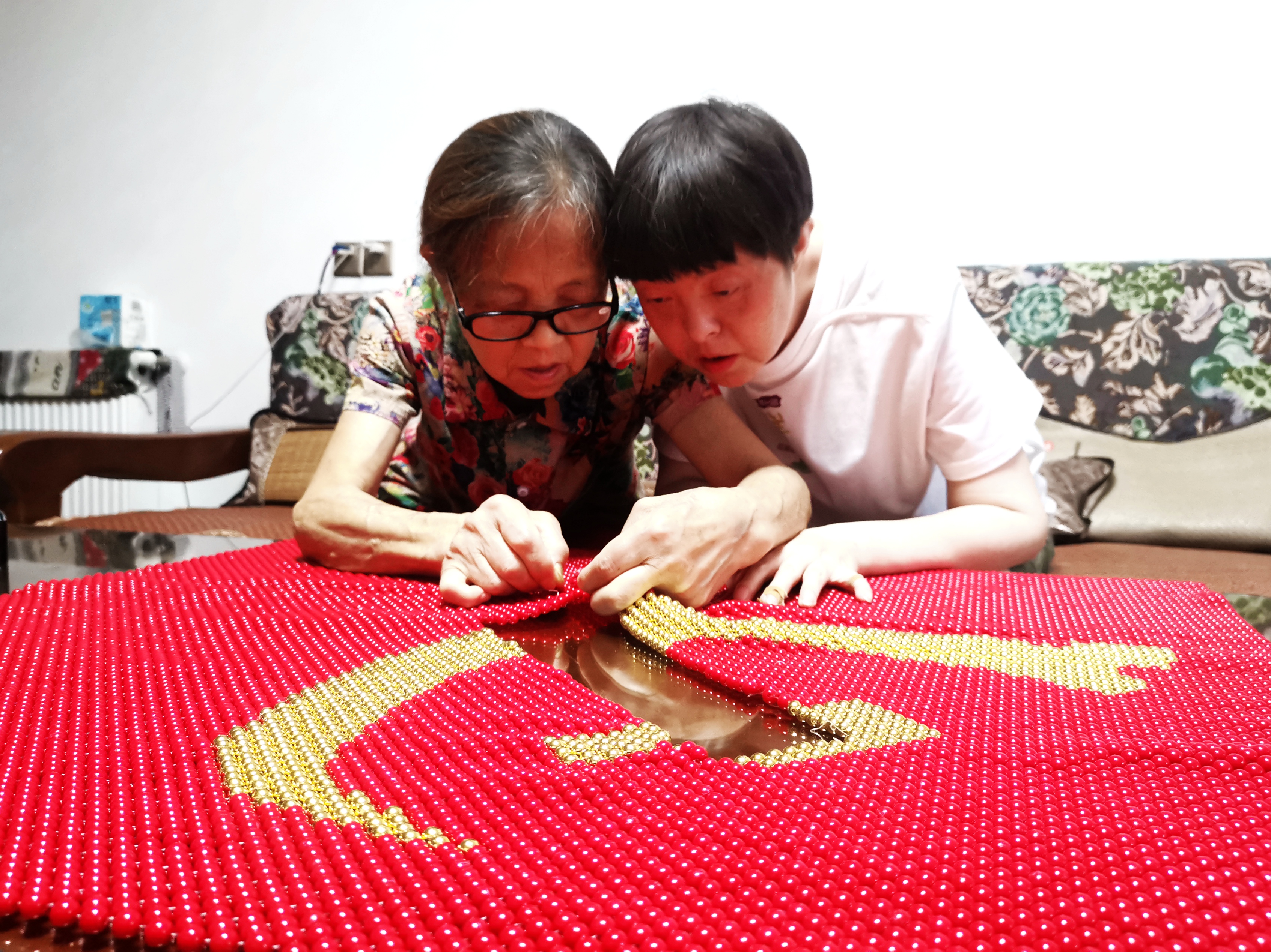 “我们赶上了共产党创造的好生活,就想着用串珠编一面党旗表达祝福。”“七一”前夕,七旬党员王解明突然冒出了这样一个想法。她和女儿等人,在经历了材料缺失、颜色偏差等一系列小插曲后,终于赶在6月28日顺利完工。