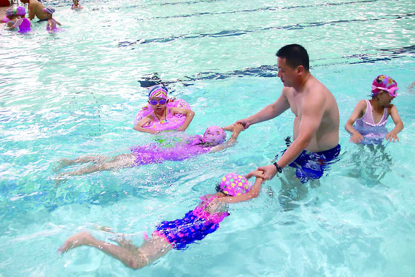 “针对低年级学生,首先帮他们消除对水的害怕,在水中练习憋气漂浮,再进行下一步教学,如蹬腿、蛙泳等。”资深游泳教练金淼介绍,如今,越来越多的孩子学会了游泳,掌握了一项强身健体和自护自救的技能。