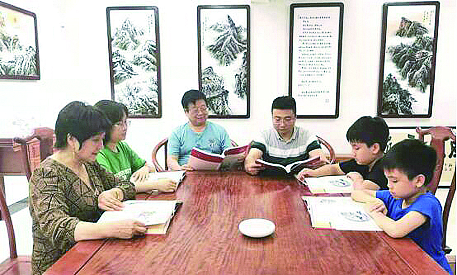 ▲团结、和谐、热爱中华优秀传统文化的一家子。图中左三为公司董事长林志庆、右三为公司总经理庄丰宇(林志庆之子)。左一为林志庆妻子、公司党支部书记李平,左二为林志庆儿媳、公司副总经理陈佳。右一、右二为林志庆两个孙子。