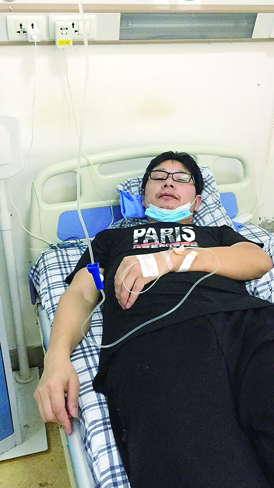 ▲受伤后,左师傅躺在病床上接受治疗。 受访者供图