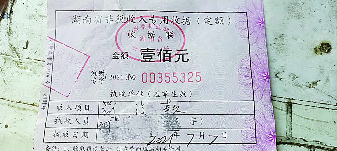 ▲尹先生缴纳罚款的非税收票据。记者/廖智勇 摄