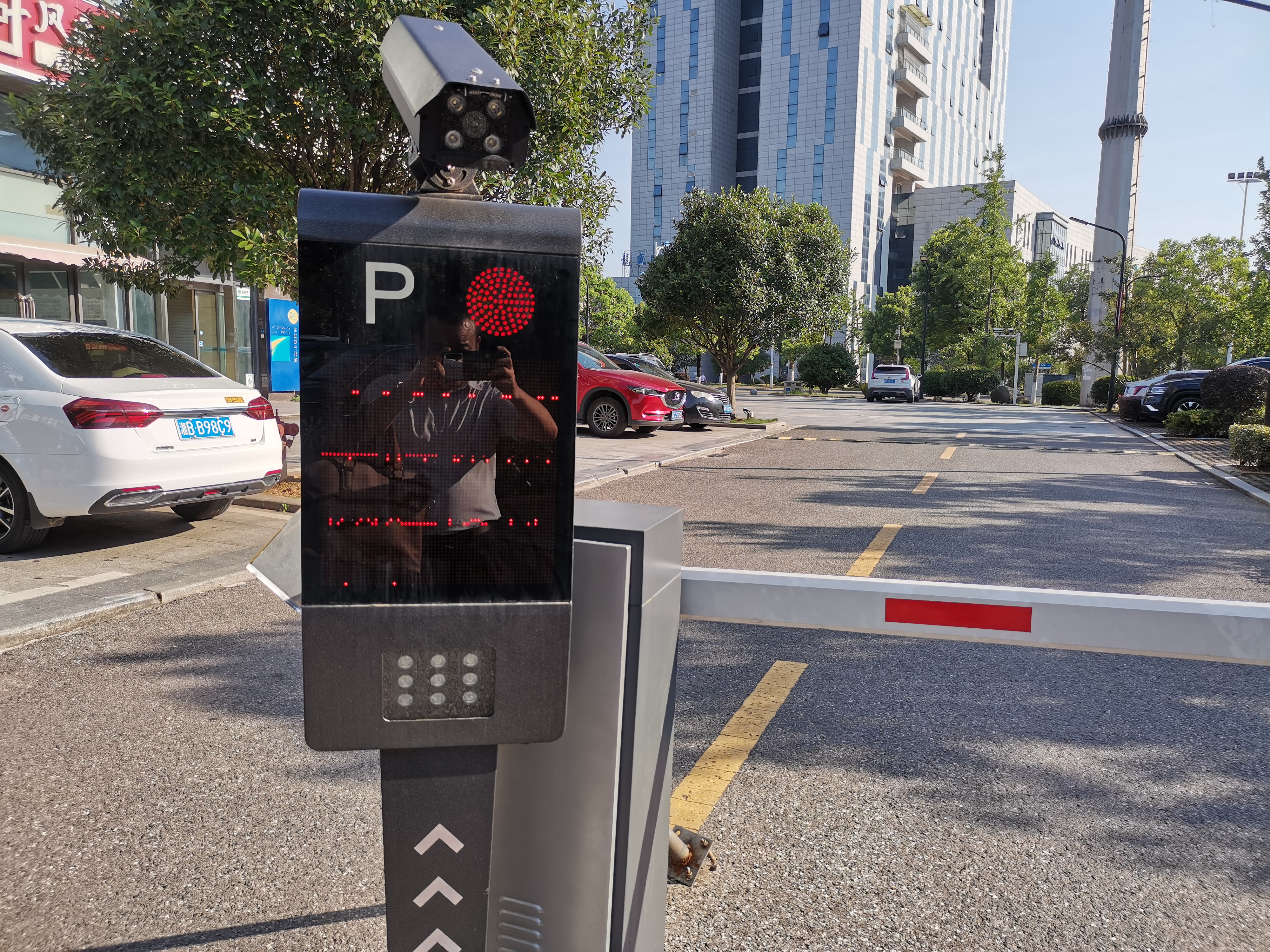 ▲腾龙大酒店停车场无人收费系统。 记者/姚时美 摄
