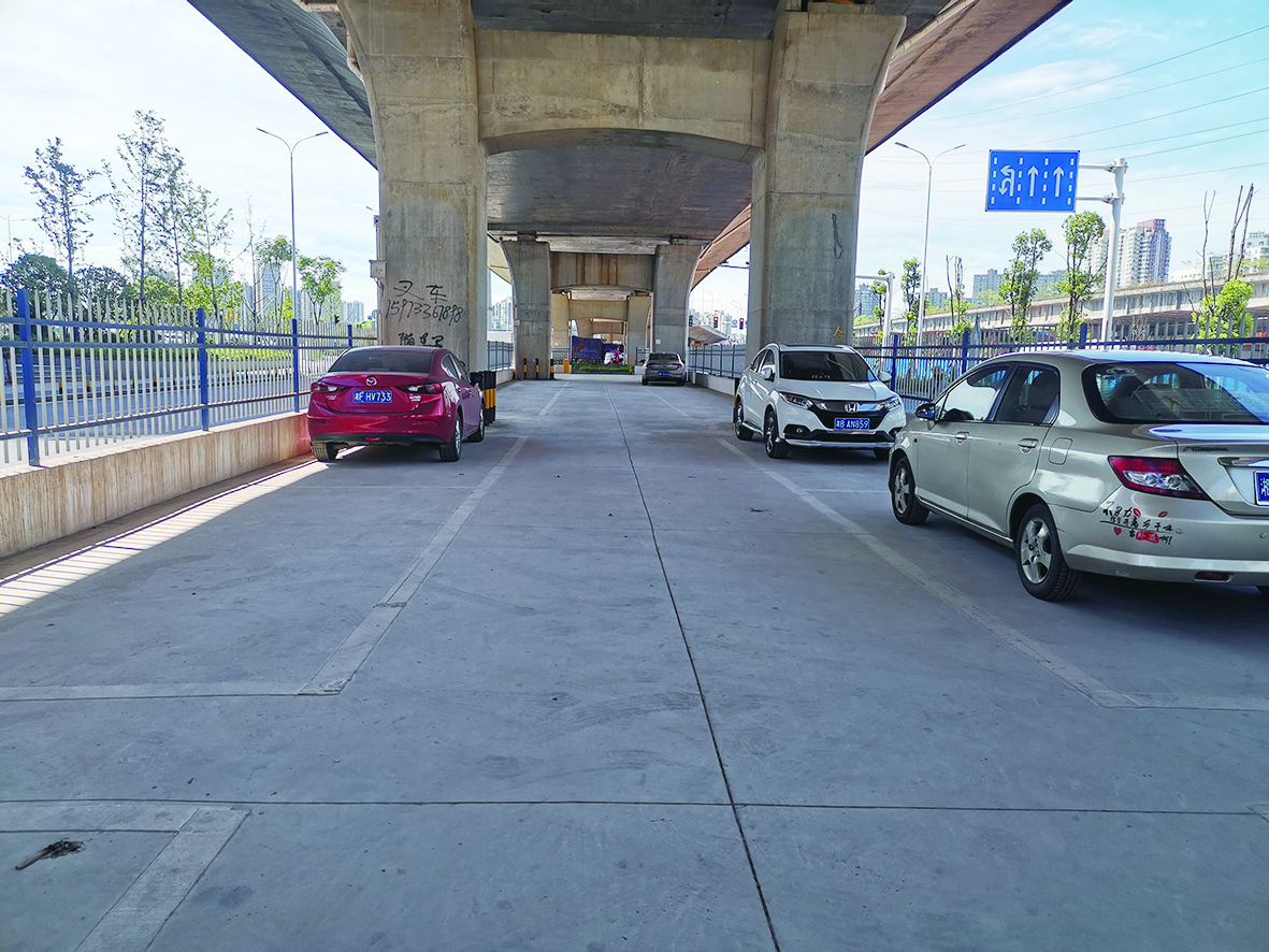 ▼铁东路核心段桥下公共停车场。 记者/姚时美 摄
