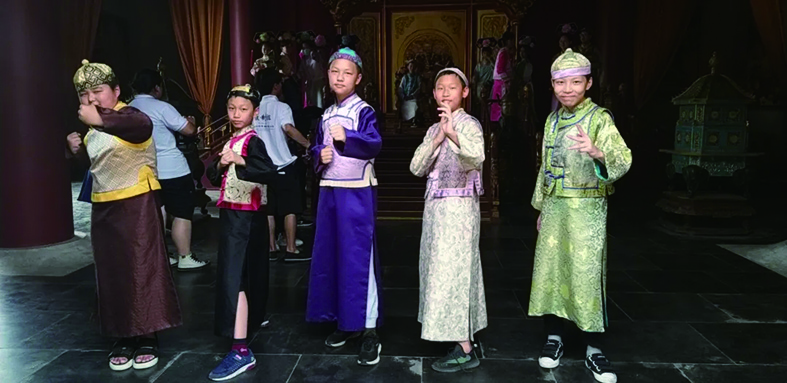 横店影视城是国家5A级旅游景区、全球最大规模的影视拍摄基地,全国每年有四分之三的古装剧、近代剧在此取景拍摄。金戈铁马,燕赵建筑,秦汉文化,在秦王宫得以真实再现,感受秦始皇一统天下之雄伟气势;登九九阶梯,感受秦王一统六国,四海归一的凌云壮志……在秦王宫,孩子们走进1997年为著名导演陈凯歌拍摄历史巨片《荆轲刺秦王》而建的秦王宫营地,这里也是电影《英雄》《木乃伊3》主拍摄地。孩子们还在西华门剧场观看大型演出《紫禁大典》,领略我国历史的变迁和发展史;在小御街王府进入“毕昇活字体验馆”,体验千年古技活字印刷。孩子们还参与了微电影拍摄,圆了演员梦。