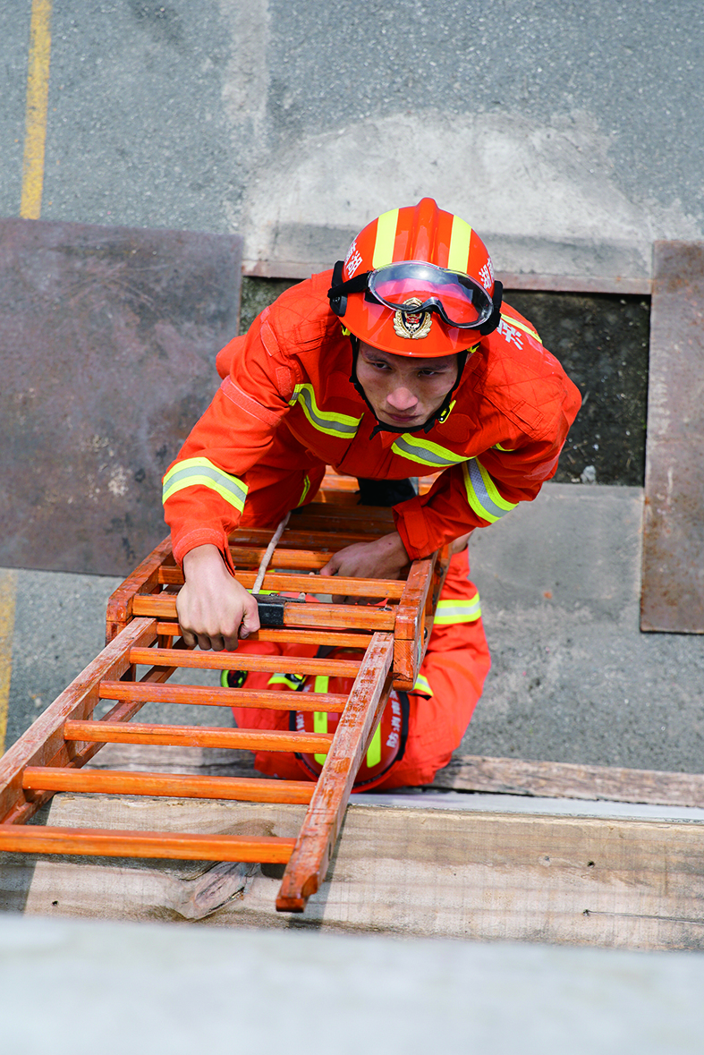平日里,由于反复练习起梯、拉梯、爬梯等动作,谢晋的右肩被拉梯磨得脱皮,右手食指指甲盖全是淤血。谢晋咧着嘴笑着说,“这样的小伤根本不值一提,训练场上快一秒,救援现场就多一分保障。”
