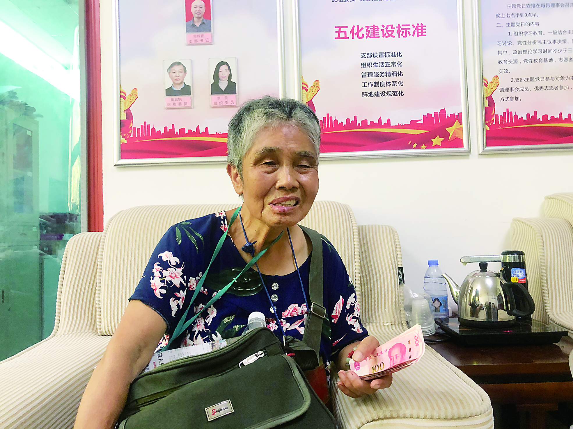 ▲张娭毑带着1000元钱来晚报捐款助学。 记者/郑炜青 摄